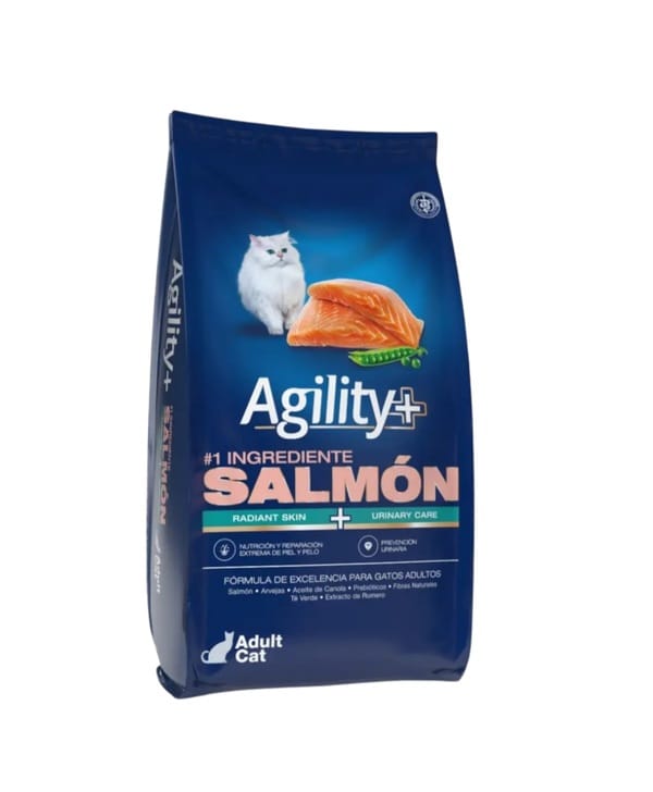 Fabricado En Argentina / El bienestar interno de los gatos se manifiesta en su vigor exterior. Agility+ es la nutrición de avanzada que supera los requerimientos nutricionales del gato adulto. Combina la excelencia de la proteína del salmón, con nutrientes específicamente integrados para potenciar su salud, con un plus bifuncional: piel sana y radiante + tracto urinario cuidado y protegido.