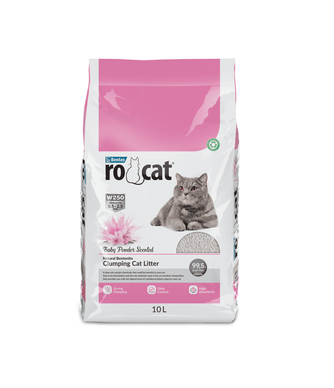 Libre de polvo y tamaño del gránulo ideal: Rocat es 99,5% libre de polvo, lo que evita problemas respiratorios en las mascotas y promueve un ambiente de respiración saludable. El tamaño del gránulo varía de 0.6-2.50mm (Serie W250), lo que ayuda a disminuir los restos de arena fuera del arenero, manteniendo el área circundante más limpia.