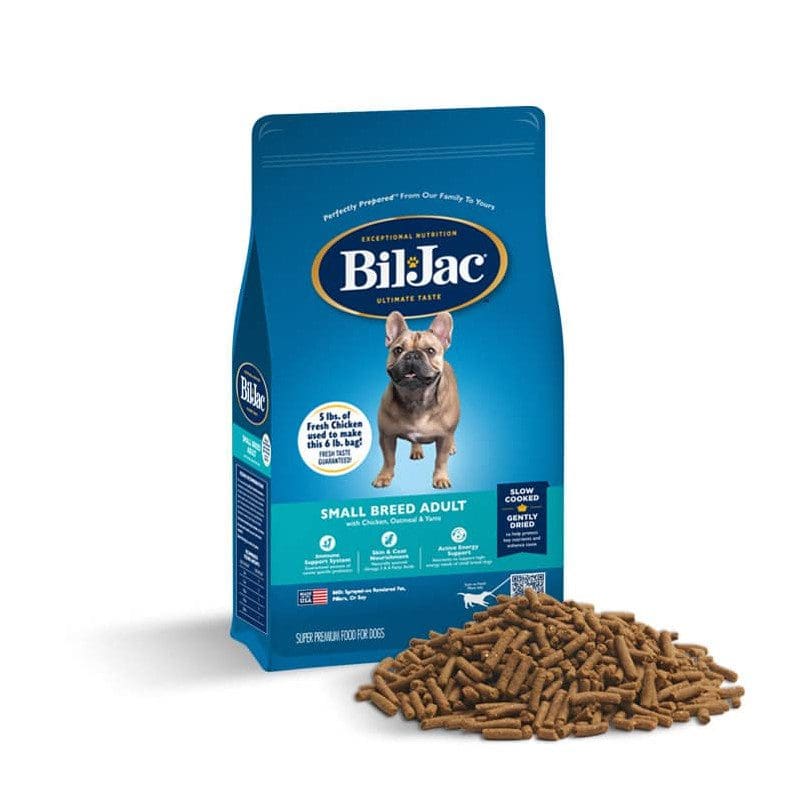 Cuidadosamente formulado para el cuidado y nutrición de perros de Razas Pequeñas. Nuestros bocados pequeños y fáciles de masticar están hechos con pollo, avena y ñame. Vea qué tan saludable puede ser su perro de raza pequeña® con Bil-Jac.