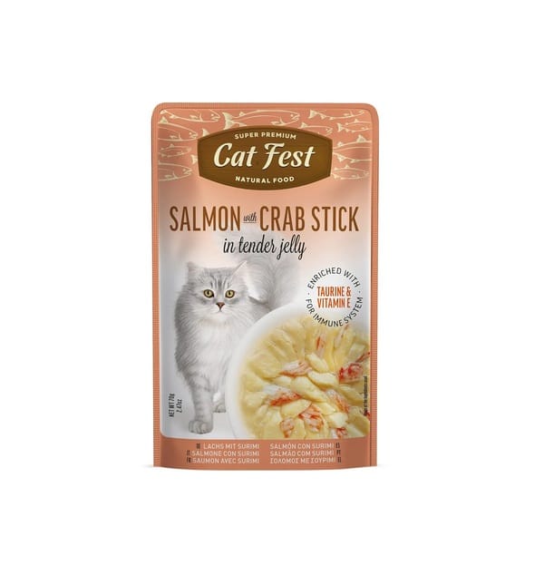Cat Fest Pouch Salmon Con Palitos De Cangrejo 70Gr