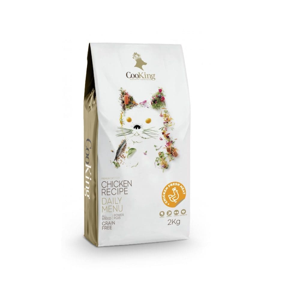 Fabricado en España / ¡CooKing Grain Free Chicken Recipe es la elección perfecta para gatos adultos que merecen lo mejor en cada comida! Nuestra receta es una deliciosa combinación de carne fresca de pollo, salmón y legumbres, que proporciona una alimentación completa y equilibrada para tu felino. Además, está diseñada para satisfacer incluso a los paladares más exigentes.