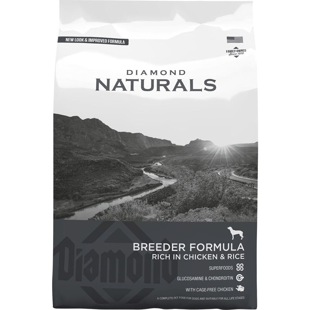 La Fórmula Diamond Naturals BREEDER, rica en POLLO y ARROZ, está formulada para contribuir a estimular la vitalidad y la salud de los perros y cachorros de razas de trabajo. Esta fórmula “súper premium” de pollo fresco ayuda a estimular la fortaleza y resistencia durante todo el día; a desarrollar un tono y estado musculares adecuados y una excelente salud de la piel y el pelaje. Además, nuestros aditivos de glucosamina y condroitina contribuyen a conservar sanas la función de las articulaciones y su movilidad.