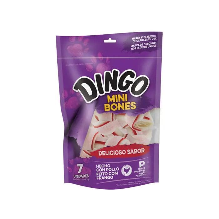 El irresistible masticable de cuero sin curtir de la marca Dingo® hecho con pollo real es de tamaño mini para su amiguito favorito. DINGO MINI BONES son perfectos para darle a tu perro todos los días un masticable lleno de diversión y sabor. Snack para perros de raza pequeña.