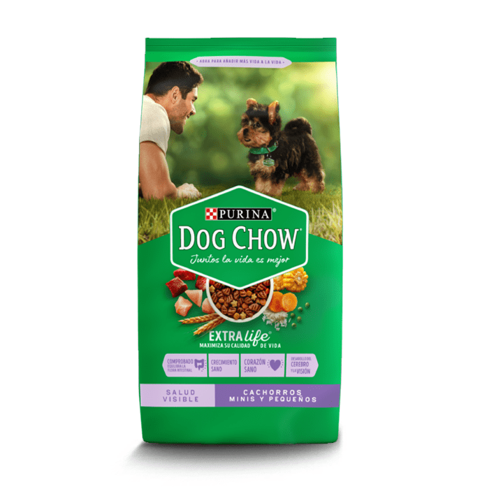 Alimento seco para cachorros minis y pequeños DOG CHOW® con Carne y Pollo Sin Colorantes. En cada croqueta encontrarás un alimento 100% balanceado, con probióticos naturales que equilibran su flora intestinal, omegas 6 y 3 y niveles de sodio adecuados. Promueve el desarrollo del cerebro y la visión, un crecimiento sano, un pelaje brillante, ayuda a mantener un corazón sano y músculos y huesos fuertes. Con Extralife, una mezcla especial de antioxidantes, vitaminas y minerales que ayuda a maximizar la calidad de vida de tu perro día tras día, entregando hasta 1,8 años más de vida saludable juntos. Ahora Sin Colorantes.