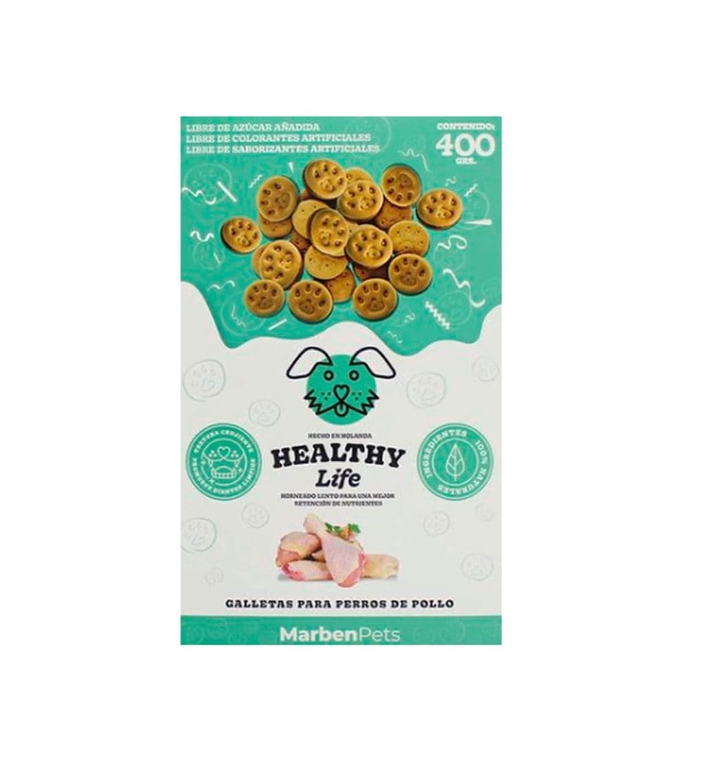 Galletas Healthy Life Pollo es una receta de bizcochos horneadas, en cocción lenta, crujientes y saludables para perros. Producto elaborado con ingredientes especiales que combinan los beneficios de una nutrición equilibrada con un sabor inigualable.