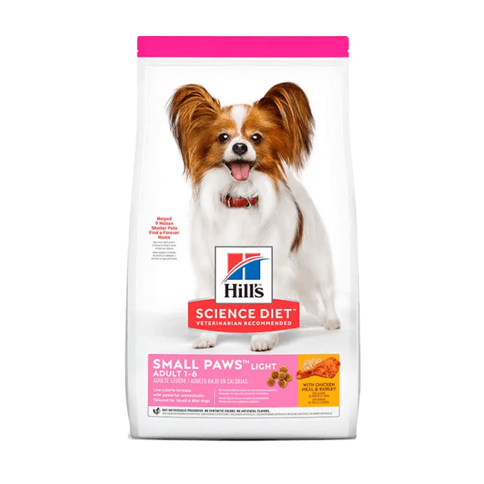 El Alimento Para Perros Hill’S® Science Diet® Small Paws™ Light Adult Es Nutrición Diseñada Para Perros Adultos De Raza Pequeña O Miniatura, Menos Activos Que Requieren Un Alimento Bajo En Calorías Para Ayudarlos A Conservar Un Peso Y Estilo De Vida Sanos. Especialmente Hecho En Bocados De Tamaño Pequeñito.