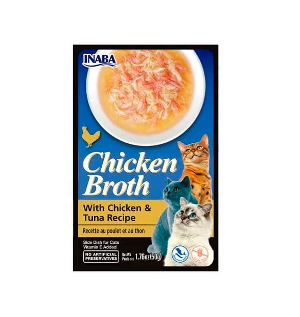 El Inaba Chicken Broth Atún es un delicioso complemento para la alimentación de tu gato. Este producto está hecho con un caldo de pollo 100% natural y añade suculentos trozos de pollo y atún para darle un sabor irresistible. Además, este caldo es una excelente manera de mantener hidratado a tu gato, ya que contiene un 93% de humedad. Úsalo como complemento para la comida, como topper para alimentos húmedos/secos para gatos o simplemente como una deliciosa golosina. Proporcione agua limpia y fresca diariamente y para la salud de su mascota, visite regularmente a su veterinario.