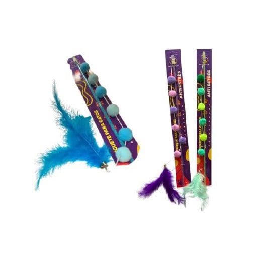 Juguete Gato Varilla Pompon Con Pluma