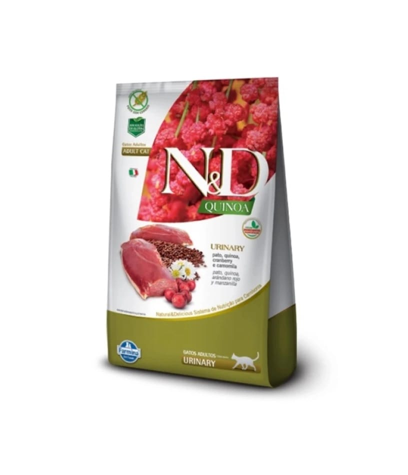 Fabricado En Brasil / N&D Quinoa Urinary es un alimento completo y balanceado indicado para gatos adultos con tracto urinario sensible. Formulado con Pato, Pato, Quinoa, Cranberry y Manzanilla. Sin cereales ni gluten. Sin conservantes artificiales.F.