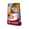 Carne de pato, harina de vísceras de aves (pato y pollo) (mín. 10%), huevo deshidratado, quinoa (mín. 8%), almidón de papa, aceite de pollo, aceite de pescado, psyllium, linaza, levadura de cerveza, cranberry deshidratado (mín. 0,15%), manzanilla (mín. 0,15%), extracto de té verde, extracto de aloe vera, betacaroteno, luteína, fruto-oligossacarídeos, manna / oligossacarídeos, DL-metionina, taurina, L-carnitina, sulfato de condroitina, sulfato de glucosamina, extracto de yuca, zeolita, hidrolisado de hígado de pollo y/o cerdo, vitaminas (A, D3, E, K3, B1, B2, B6, B12, C, biotina, niacina, ácido pantoténico, ácido fólico, cloruro de colina), cloruro de potasio, carbonato de cálcio, fosfato bicálcico, cloruro de amonio, fierro orgánico, cobre orgánico, zinc orgánico, manganeso orgánico, selenio orgánico, yodato de calcio, propionato de calcio, antioxidante natural (concentrado de tocoferoles). Eventual substitutivo: proteína hidrolisada de pescado.