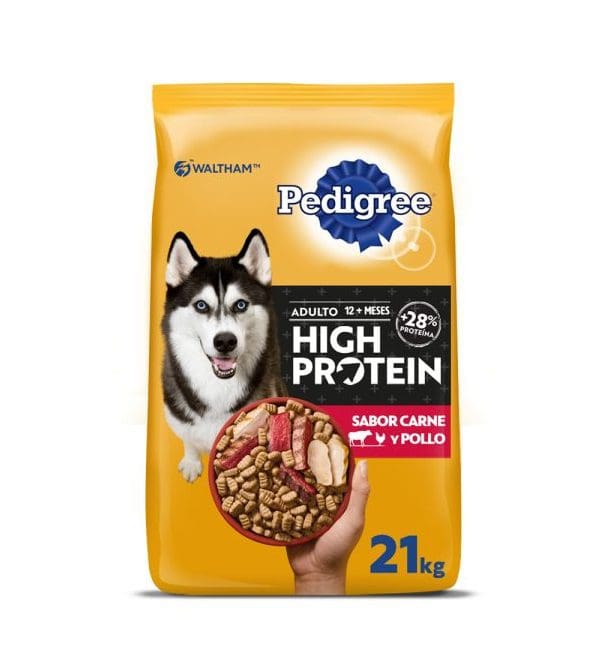 Nuevo PEDIGREE HIGH PROTEIN, con 28% más proteína.Alimento seco completo y balanceado, elaborado con proteína de alta calidad, sin colorantes ni sabores artificiales.
