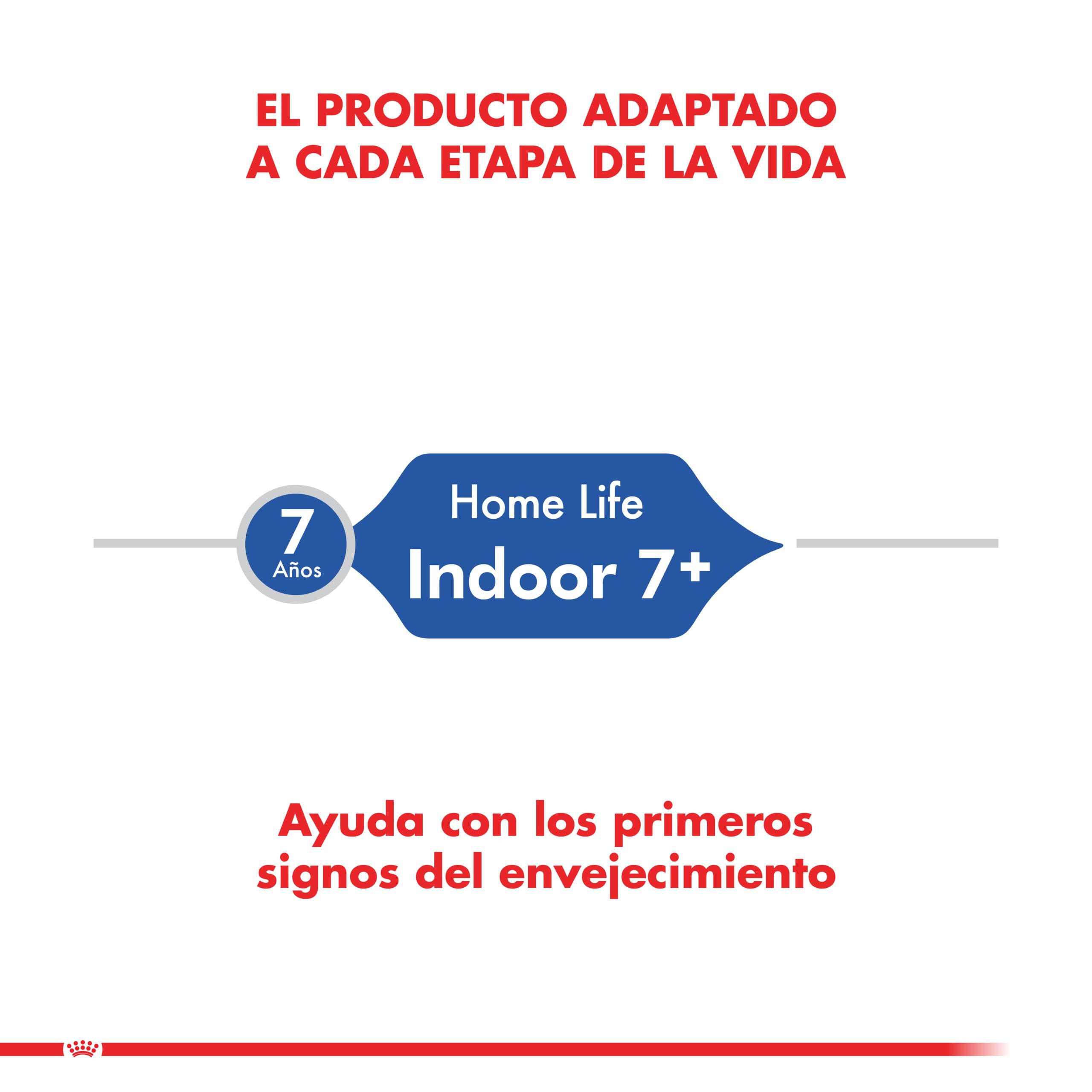 Para ayudar a los gatos frente a los primeros signos del envejecimiento y mantener la vitalidad después de los 7 años. Indoor 7+ está formulado con un adecuado balance de vitaminas y minerales. Su fórmula está enriquecida con nutrientes que contribuyen al envejecimiento saludable.