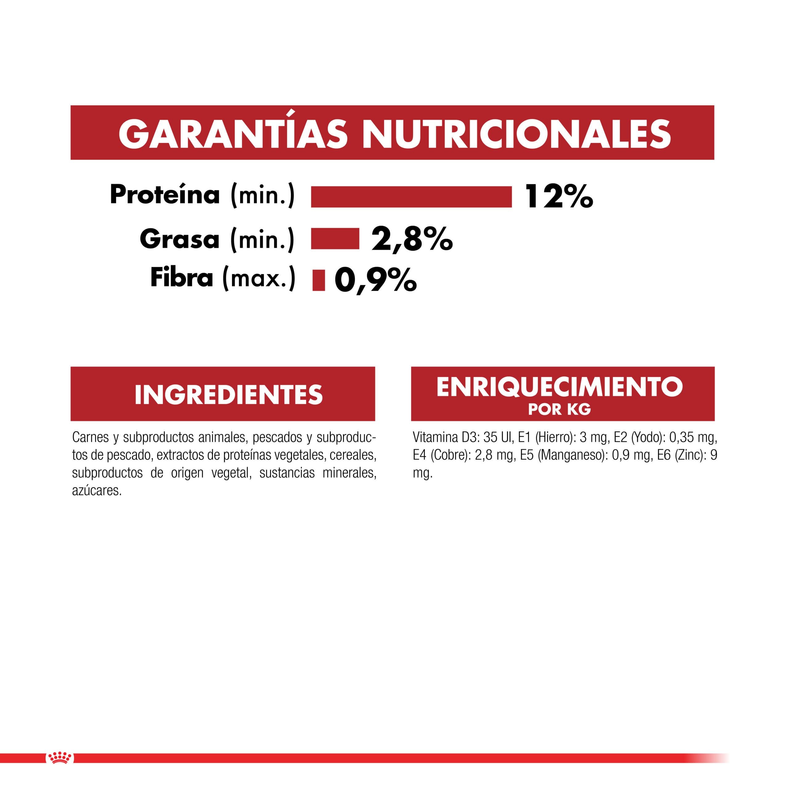 ADITIVOS (por kg): Aditivos nutricionales: Vitamina D3: 130 UI, E1 (Hierro): 3 mg, E2 (Yodo): 0,28 mg, E4 (Cobre): 2,3 mg, E5 (Manganeso): 0,9 mg, E6 (Zinc): 9,5 mg.