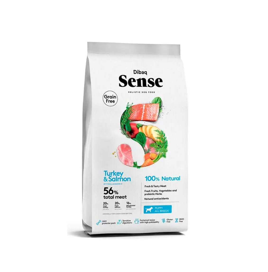 El salmón y el pavo utilizados en su origen son de consumo humano, garantizando altos niveles de proteínas y, por lo tanto, el correcto crecimiento del cachorro.