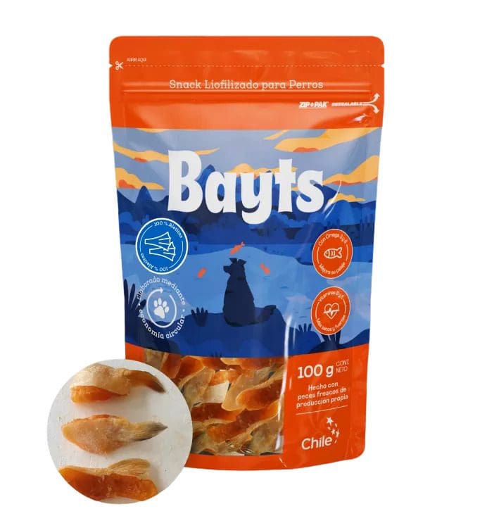 Fabricado En Chile / Snack Bayts Aletitas Salmón 100Gr Liofilizado