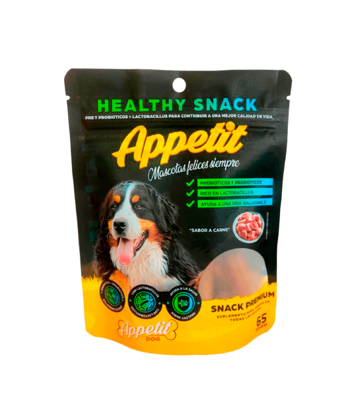 Los simbióticos son productos que contienen a la vez prebióticos y probióticos, cuyo objetivo es restaurar y/o mantener la buena salud de la microbiota intestinal. El consumo diario de nuestros HEALTHY SNACKS contribuye a incrementar la supervivencia de bacterias específicas en su fase de tránsito intestinal ayudando a aumentar su potencialidad para instalarse en el colon y desarrollar su función con efectos beneficiosos en la salud de nuestras mascotas.