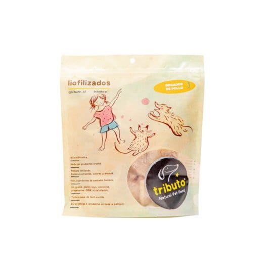 Fabricado En Chile / Trozos de Pollo liofilizados. Formato de 100 gramos. El proceso de liofilizado es una forma de preservar los nutrientes y conservar los productos retirando todo el líquido mediante procesos de congelación y cámara de vacío, sin aplicar altas temperaturas. Su textura es suave y blanda, fácil de trozar.