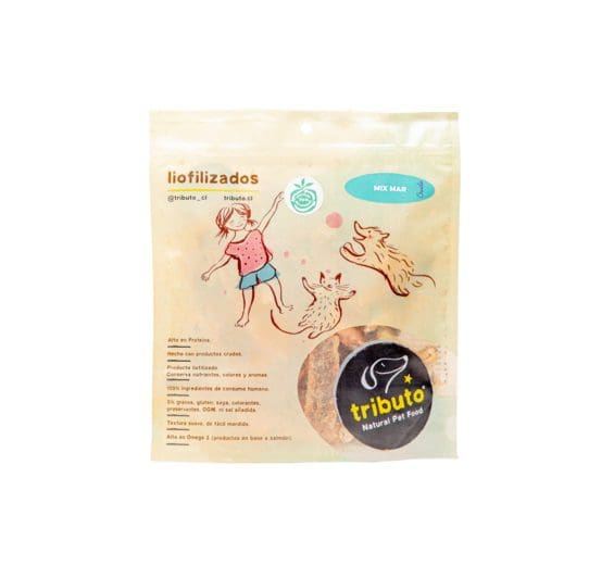 Fabricado En Chile / Tributo Snack Mix de Mar para Perros y Gatos es un rico complemento para mascotas de todas las edades. Es un snack basado en un modelo sostenible y de alta calidad a partir de Ingredientes *Upcycled utilizando la Tecnología de Liofilizado.