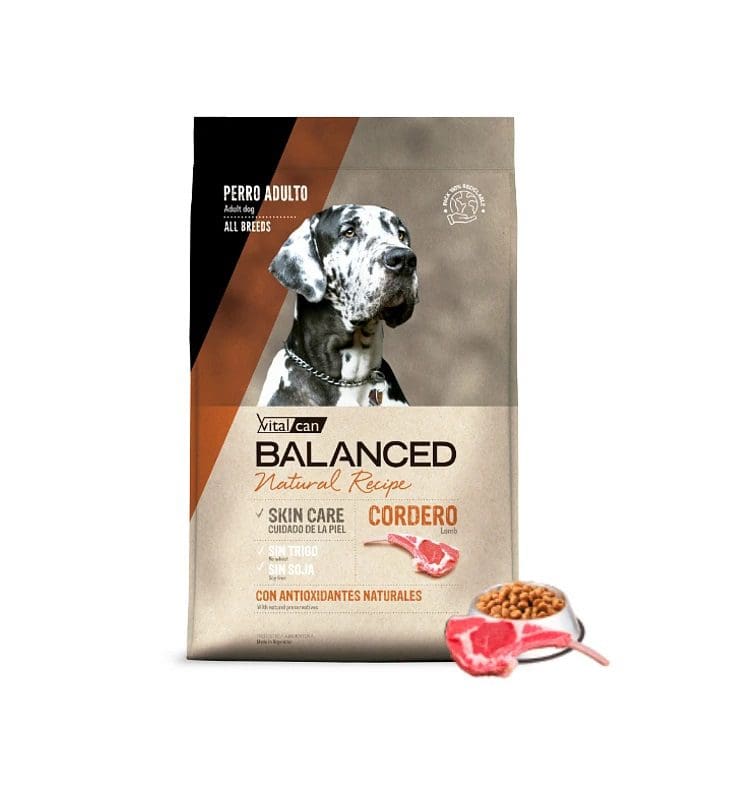 Vitalcan Balanced Natural Recipe Cordero es un alimento indicado para perros adultos de todas las razas con y sin sensibilidad digestiva y/o cutánea. Con una única fuente de proteína de origen animal (cordero) que ayuda a minimizar las posibles reacciones al alimento en perros alérgicos y/o intolerantes alimentarios. Con el agregado de fibras saludables, yucca schidigera y zeolita que favorecen el proceso digestivo generando heces firmes. Y enriquecido con aceite de pescado, fuente de omega 3, que es un excelente antinflamatorio natural que contribuye a mantener la salud intestinal y cutánea.